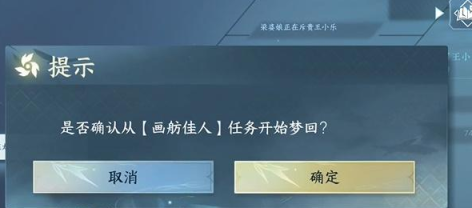 1、接着玩家是需要从画舫佳人这一任务开始梦回,随后是寻找帮他说话。