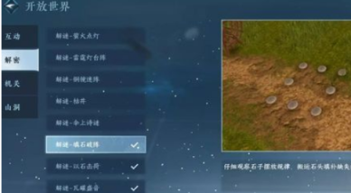 填石破阵:关于这个小游戏的玩法,它只需要将石头全部摆放到石头堆中即可破阵,不过大家要是尝试了三次都无法破关的话,可以试着使用望气,先找到该阵法的破绽在哪里,然后把石头放到对应位置就可以啦。