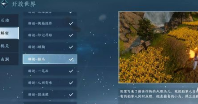 驱鸟:这个解密就更简单了,在属于自己的区域中,有很多的鸟会过来偷吃,想要将这些鸟赶走的话,大家可以直接使用江湖技能火,直接将草堆点燃,就能直接将这些小鸟吓跑了。
