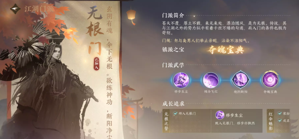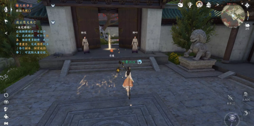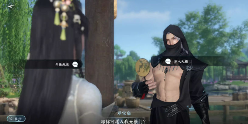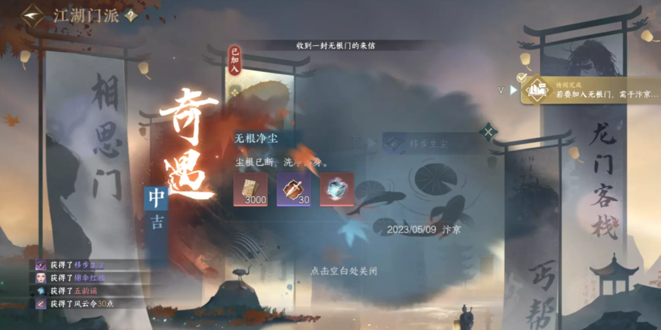 女角色选了加入就会开始下一步,完了就完成【无根神功】,回到甜水巷,开始下一个奇遇【无根净尘】。