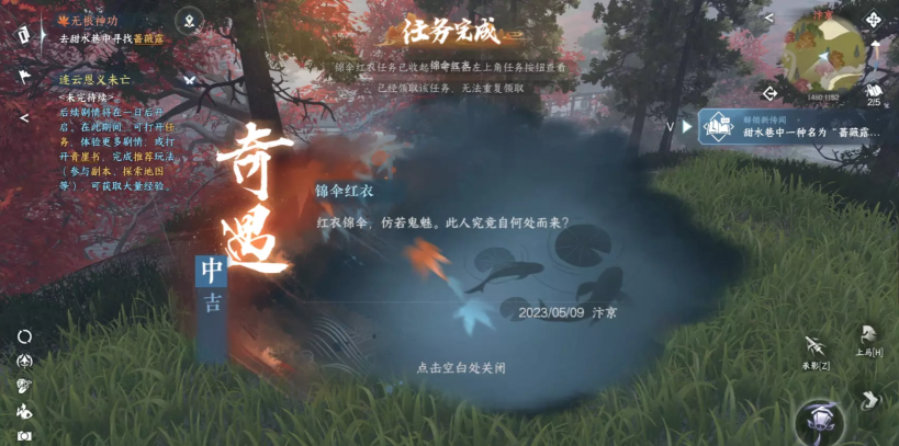 过剧情完了再地上捡到伞,【锦伞红衣】结束,直接开始奇遇【无根神功】。