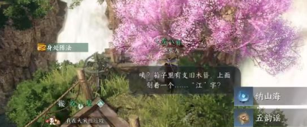 2、打开宝箱后获得道具旧木簪,上面刻着一个江字。只有获得该道具才能触发空谷桃花任务。