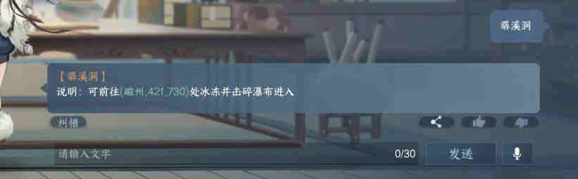 可前往(磁州,421,730)处冰冻并击碎瀑布进入潺溪洞,在磁州的一处名为“潺溪洞”的地方,是一处瀑布后面的洞口,这里想要开启大门还需要佩戴上大梦终觉这件装备,在进入之后将会碰到一位刀狂,各位需要与其进行战斗,将其击败之后就可以继续向前行走,差不多在这个洞的最里面就可以看到一个宝箱。