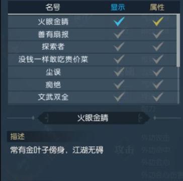 火眼金睛称号的属性加成为3耐力3身法。