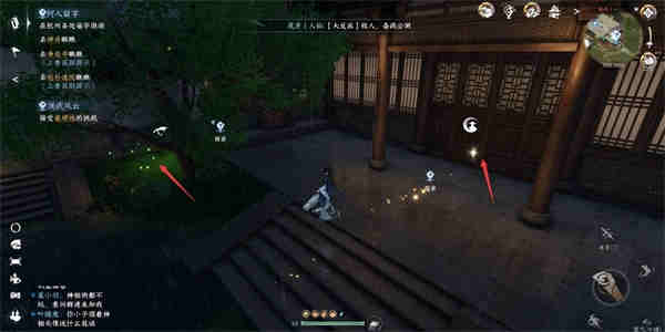 2、首先我们前往第一位置:灵隐寺,在745,1318附近使用探索动作上香就会触发剧情,我们按照NPC的指引去附近的禅房进行查看,我们进入到禅房之后,需要先于树下的萤火虫就那些互动,进入到禅房之后,按照下-左-右-上-下的顺序依次坐蒲团就可以解开机关,打开宝箱。