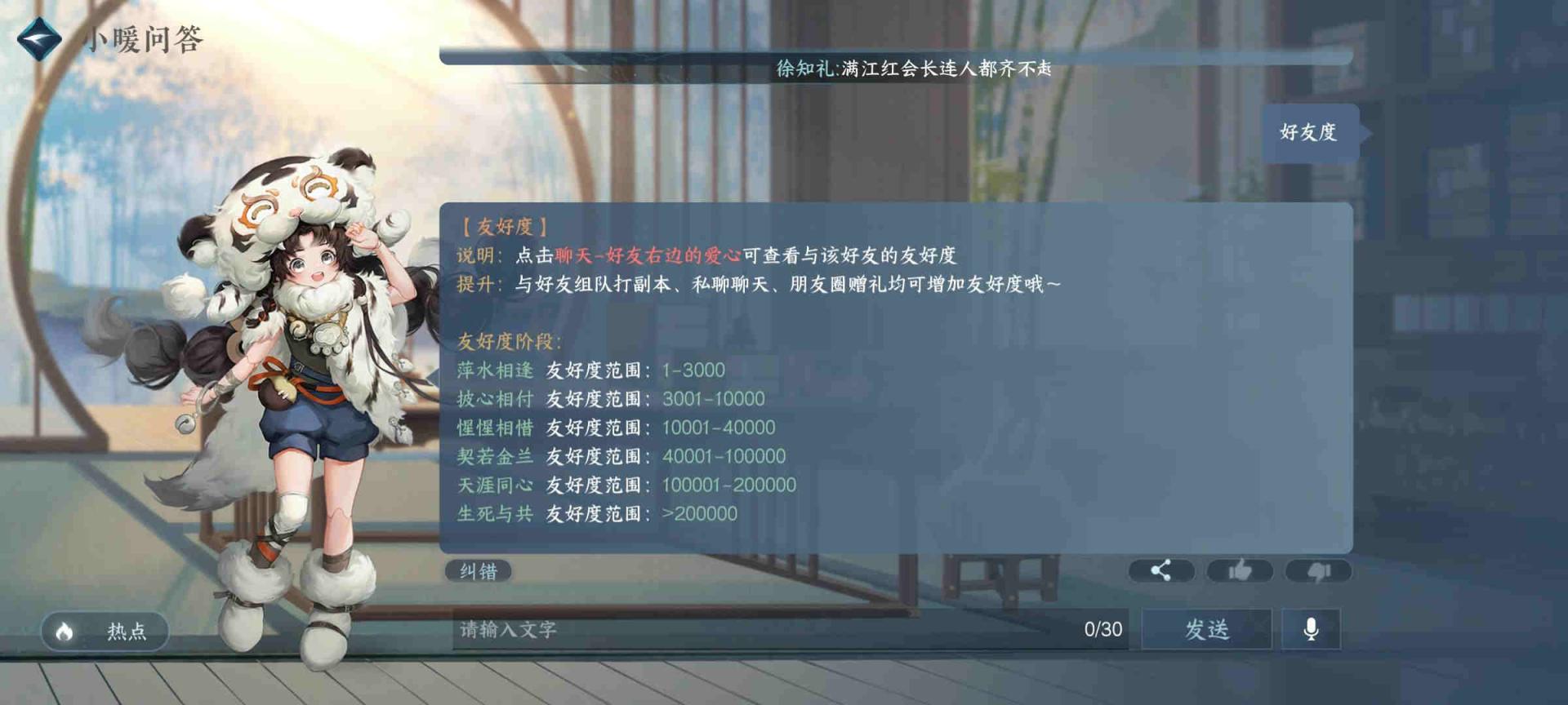 与好友组队打副本,私聊聊天、朋友圈赠礼均可增加友好度。点击聊天-好友右边的爱心可查看与该好友的友好度。