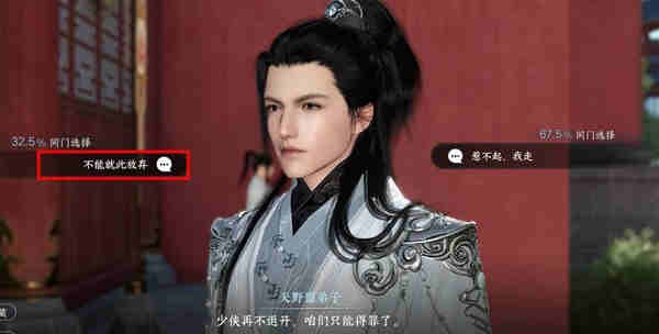 心境任务【江湖之义】中选择寻求盟主帮助时选择【不能就此放弃】,玩家可以参考下图。