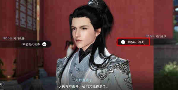 心境任务【江湖之义】中选择寻求盟主帮助时选择【惹不起,我走】,玩家可以参考下图。