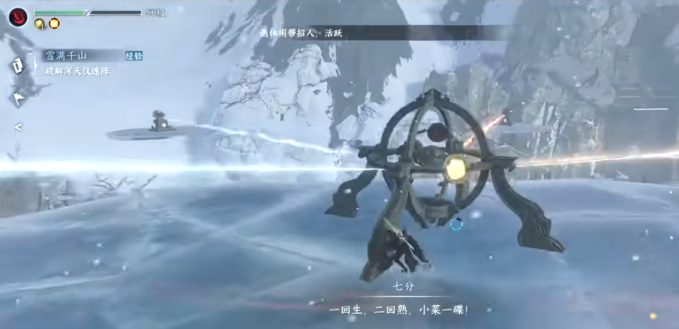 到达冰面上方后需要破解浑天仪迷阵,拉动中间的阵眼,将所有台子上的阵眼连接起来即可。