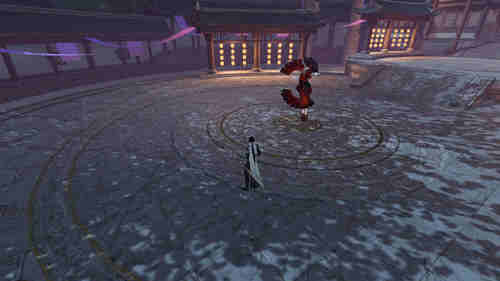 红袖向一个位置跳去,随后释放一段踢击和回旋踢,对周围玩家造成大量伤害,需要注意站位,及时远离。
