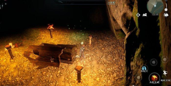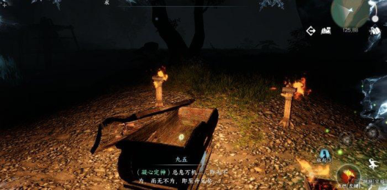前往桃溪村瀑布处往下跳,几率触发奇遇(凶)诡影幢幢,四边漆黑,打开信封后提示点燃火台,使用火把技能将四个火台全部点燃,爬入棺材查看里面字迹。首先前往桃溪村(1194,1066)瀑布处,然后往下跳。