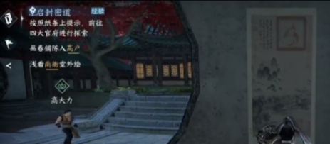 画卷铺陈入高户:来到目标位置,找到下图的画卷,然后使用火属性技能攻击画作就能进入画内,完成小游戏通关即可。