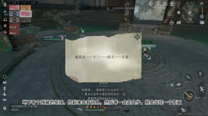 1、打完舞阳城老六先别走等一下,地下有个残破的纸筏,捡起来会有信息,然后等一会走几步,就会出现个图画,玩家可以参考下图。
