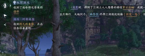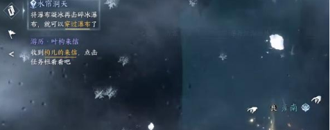 1、点开呼吸页面,找到世界探索第一天水帘洞天领取任务,收到了追命师兄寄来的信件。(找到信上所说的瀑布)