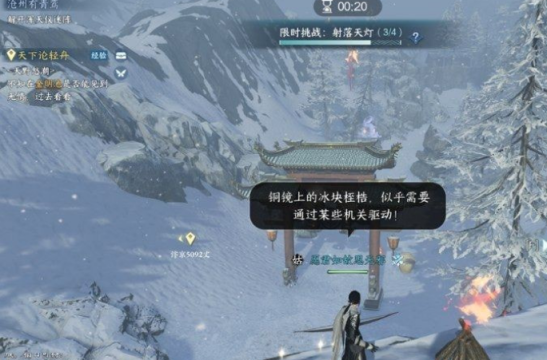 雪满千山暴风雪是跟随任务触发的,跟随任务指引到 沧州1158,1243。等待暴风雪天气时与老者对话(暴风雪来袭时间在地图左上角有显示)。首先一生一世一双人支线中的盈玉馆获得沧州路线图。