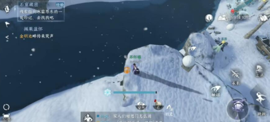 2、到达此处后开启限时挑战:印迹寻踪(需要玩家根据线索去找冰霜原东的一处印记)。