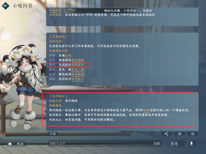流风轻云:完成武侠奇遇即可获得,这个技能是素问的绝技。