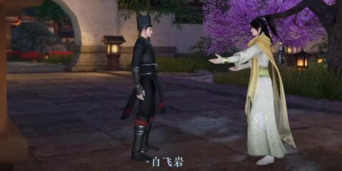 剧情结束后我们需要和白飞岩一起来开金府,到达门口之后我们需要试探白飞岩,我们再次和白飞岩进行对话。