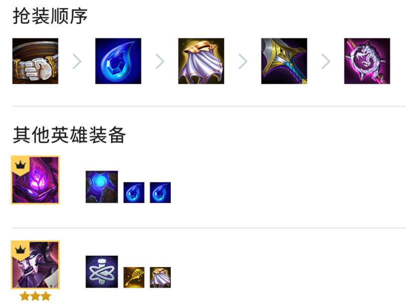 大虫子核心装备救赎,龙牙,当前版本法师纵横,龙牙反伤很关键,通常情况下大虫子都是在前排孤军奋战,第三件装备可以补到板子,这件装备,集火越多双抗越高,让大虫子可以更快的一口一个。剩下的装备如果你的马儿扎哈比较多可以补:蓝BUFF,鬼书。如果物理装备多可以给到大嘴,后期换给卡萨,杰斯都可以。切记有变异转和铲子可以优先拿,这样可以使你的阵容成型更快。