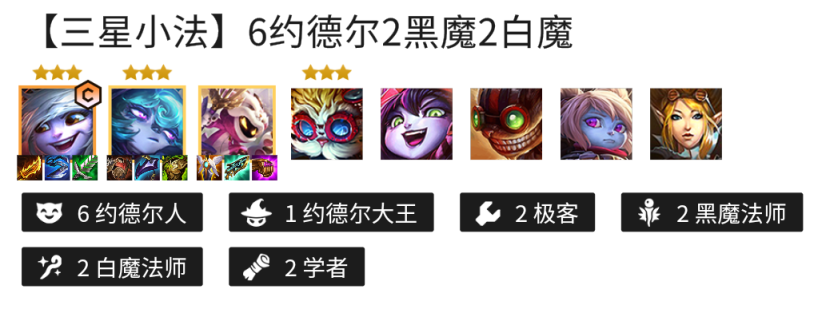 金铲铲约德尔法阵容可以玩【三星小法】6约德尔2黑魔2白魔,具体攻略如下: