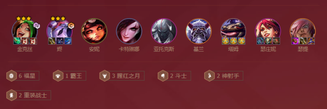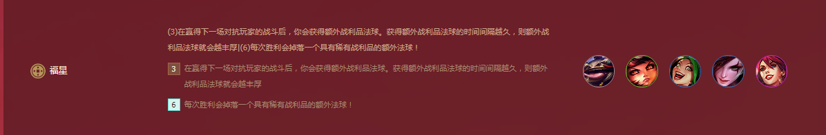2、通常情况下,福星羁绊前期都是靠连败来积累奖励,等到时机成熟的时候赢得对战收获积累的奖励。下图为常规的福星羁绊搭配。
