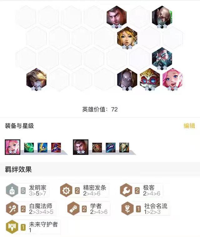 是一套过渡非常平滑的阵容运营阵容,但非常吃5费卡杰斯,哪怕只有1星就很容易吃分,2星就是吃鸡种子选手。阵容主要是双核心:前排杰斯与后排法系输出奥利安娜,阵容前排坦度主要依靠发明造物与杰斯和塔里克9人口可看情况增加塔姆,阵容多枚棋子技能拥有控制与续航,还携带3白魔法师羁绊全员魔抗较高,阵容坦度较为优质。