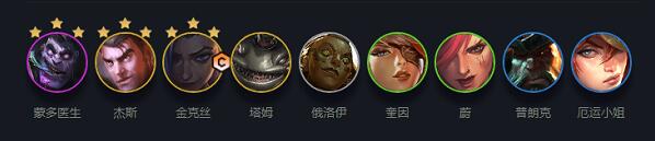 阵容成员:蒙多医生 杰斯 金克丝 塔姆 俄洛伊 奎因 蔚 普朗克 厄运小姐