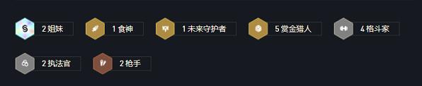 阵容羁绊:5赏金猎人4格斗家2执法官2枪手2姐妹1食神1未来守护者