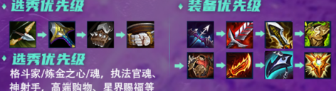 优先合出无尽,前中期无尽搭配挑战、帝国的羁绊在有了两星莎弥拉后很容易就能锁住血量打出连胜,甚至莎弥拉来的早一星莎弥拉就有足够的强度锁住血量,后续装备选择最后的轻语强化莎弥拉打坦克的速度,最后一件装备选择正义之手提供回复能力,给莎弥拉带来一定的自保能力。