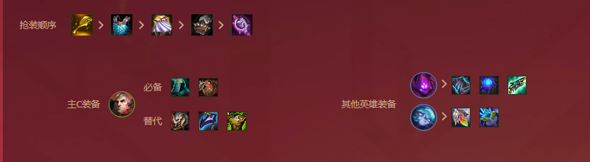 2、装备分析:水银必备,没有水银的乌鸦很呆呆,然后做反甲好打挑战刺客跟狙神,第三件看情况,法多做龙牙非常优秀,泰坦坚决跟狂徒也可以,离子火花跟救赎也很不错,但是这种功能装没有必要给乌鸦,一般给薇古丝就可以。