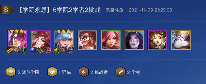 2,学院永恩-6学院2学者2挑战,由永恩,拉克丝,雷欧娜,男枪,卡特琳娜,卡莎,风女,猫咪组成.