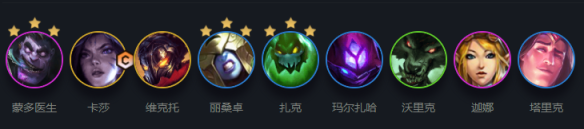 1、炼金卡莎阵容成员由蒙多 卡莎 维克托 丽桑卓 扎克 马尔扎哈 狼人 风女以及宝石组成