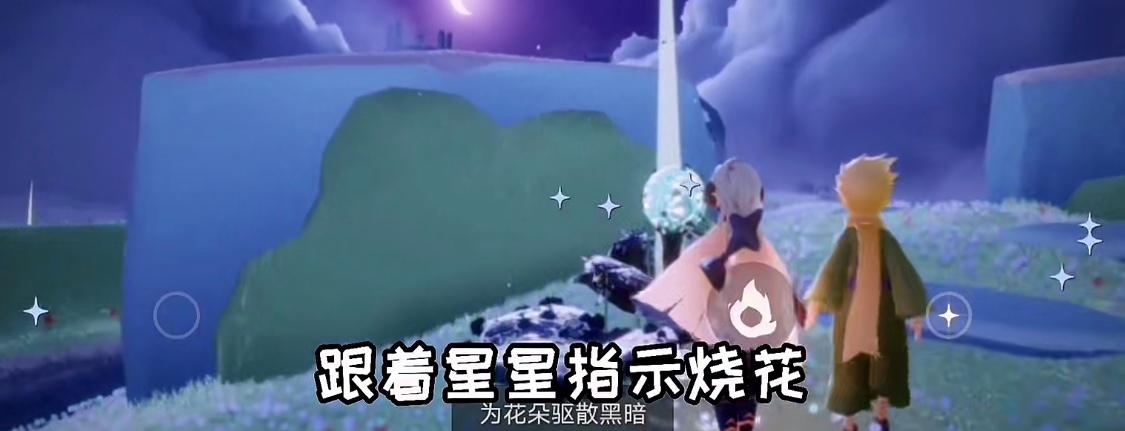 4、接着可以和小王子牵手,小王子会带着你去被黑暗植物覆盖的花朵那里,指引你烧掉黑色植物。