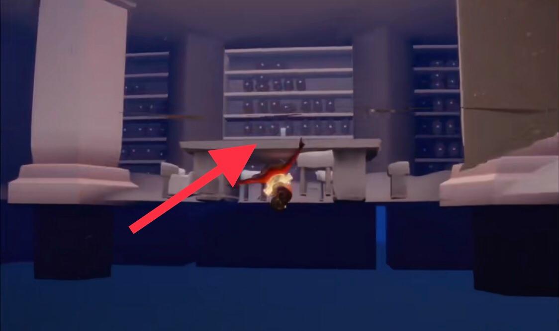 1、首先到达禁阁二层四人门之后,飞到四人门的台子下面,会发现在台子下面会有一个缝隙,飞到这个缝隙里去。