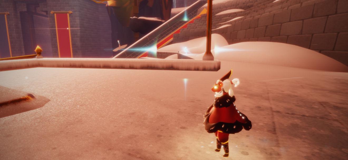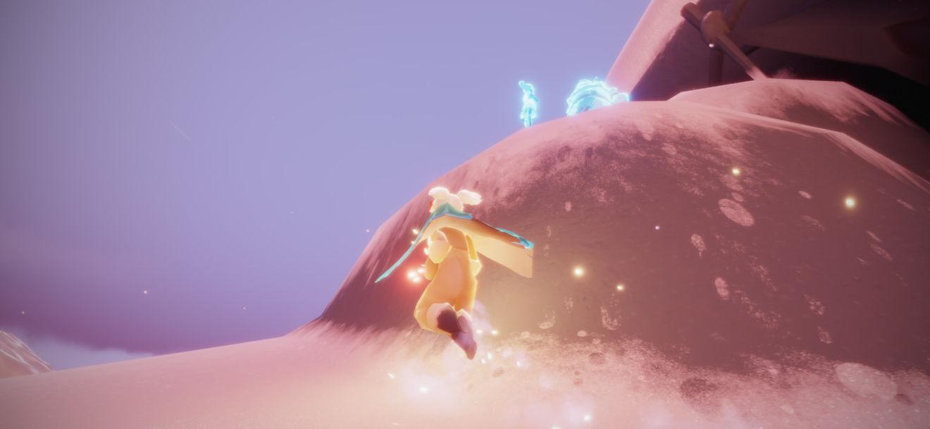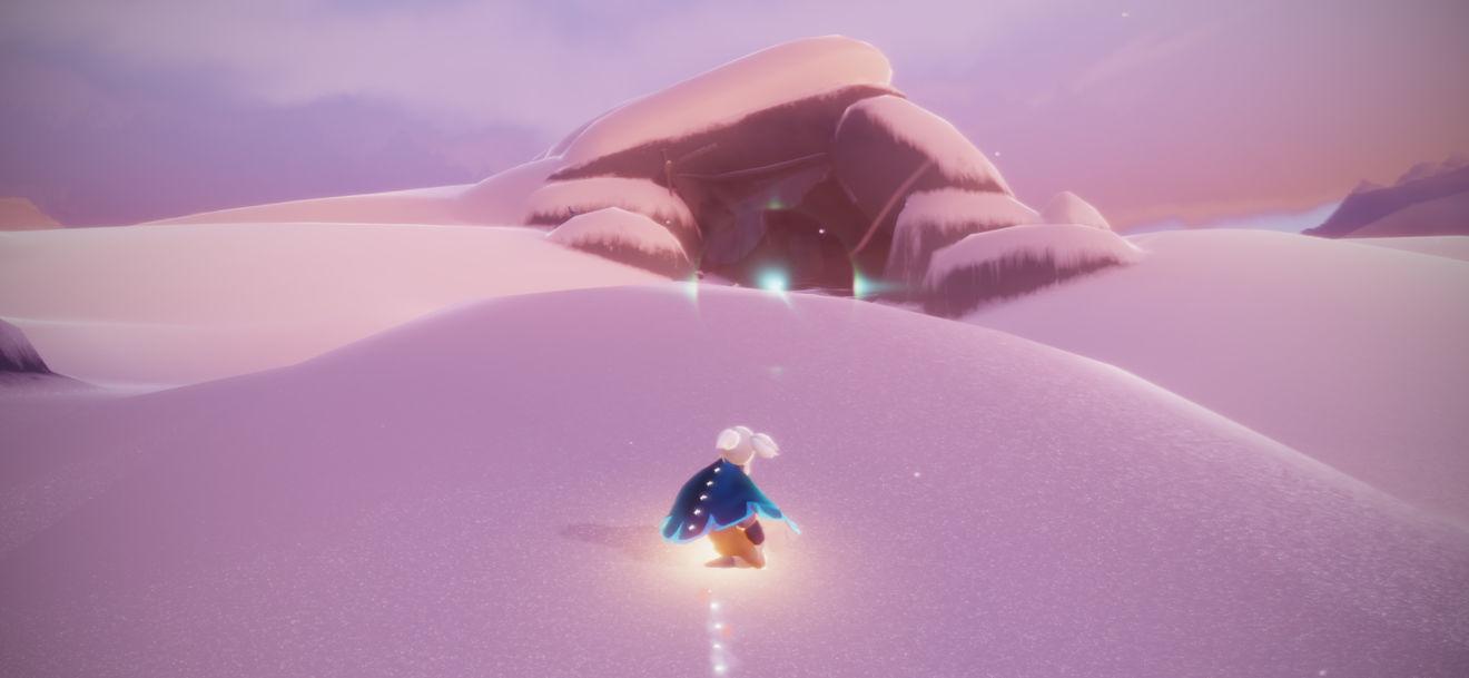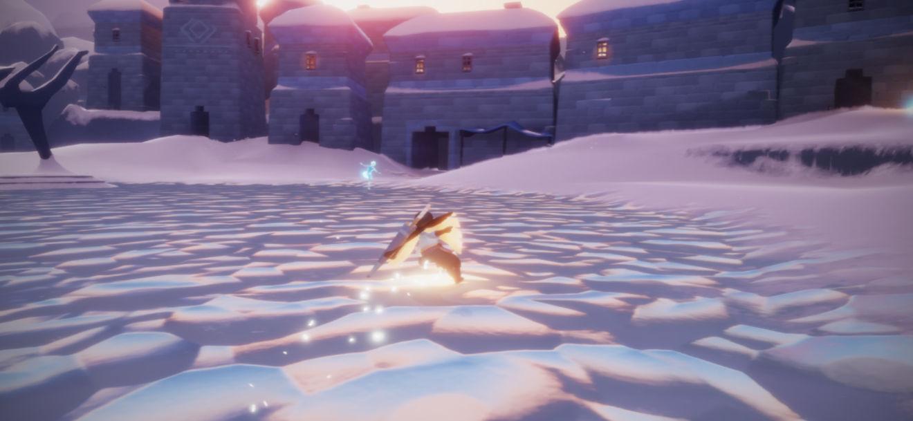 1,首先是进入梦想季的地图“圆梦村”入口在霞谷交友区亭子旁边还有一个口在终点那里,进来之后滑一段雪就能看见给我们任务的先祖了找她就可以开启梦想季的任务了。