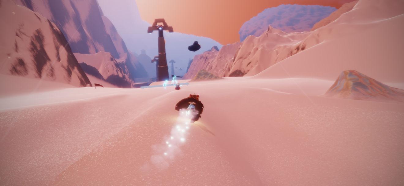 6,我们可以坐缆车上去。收集方式也一样是一个一个点的去碰,但是这个任务的消失速度极快,建议不要飞,滑雪会越滑越快还容易过一点。