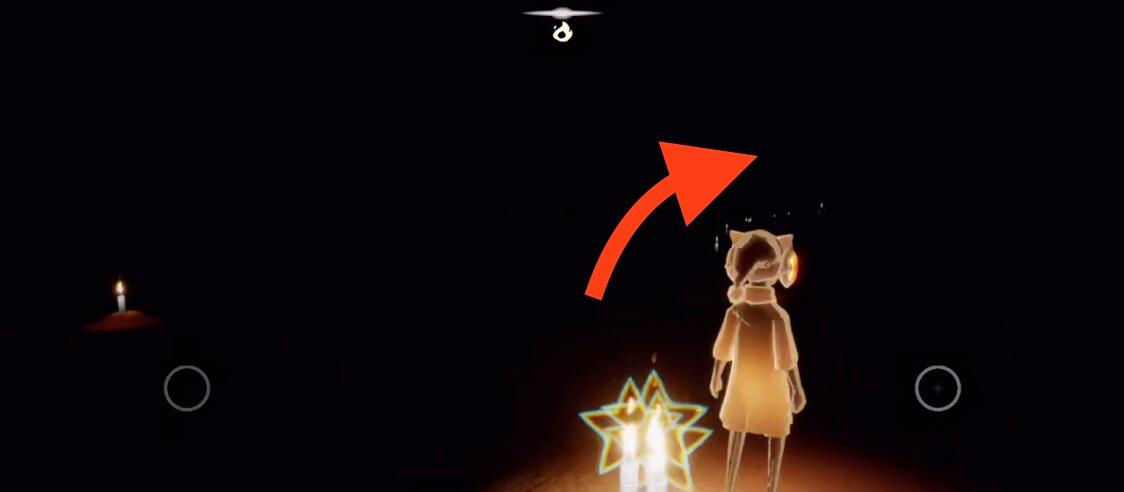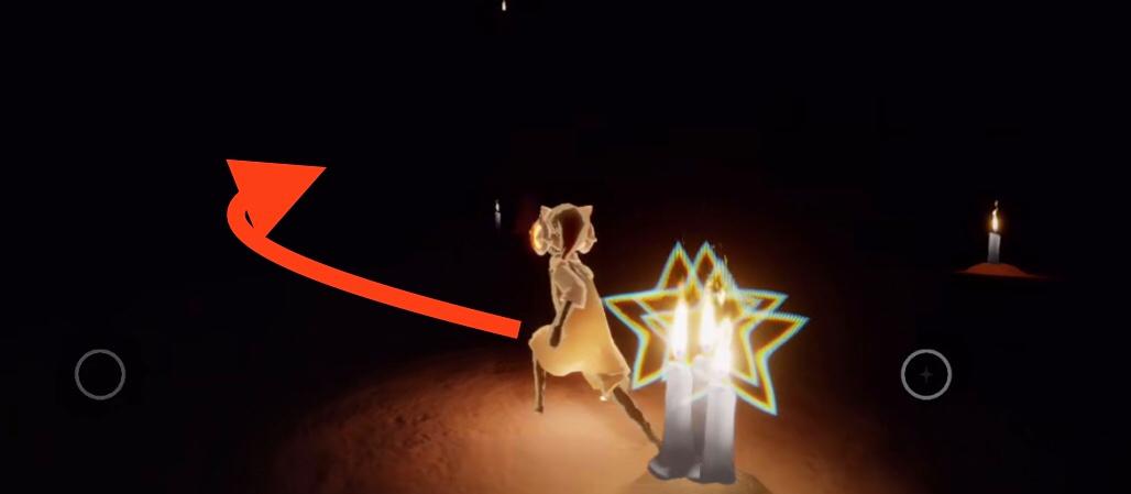 3、走出窄道后,就会出现分岔口,站在分岔口蜡烛上并面向分岔口,然后选择右边的蜡烛接着走。