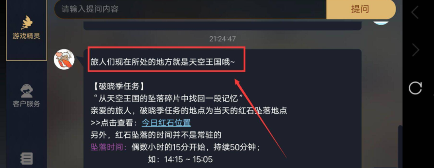 首先碎石位置每天的都不一样,哪一个地图门口有向导先祖,红石就在哪个地图;同时也只有门上边有碎石才说明此时红石正在降临。比如今天的碎石位置是在霞谷地图。