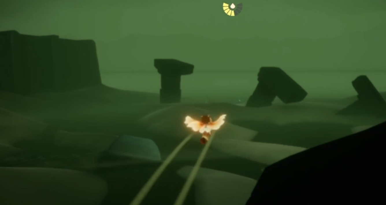 3.跑到尽头,接着飞比较长的一段距离,降落在下图所示位置。