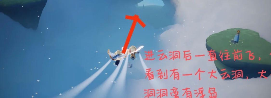 2、进入右边隐藏图后,向前飞,飞进前方的云洞里就是圣岛季地图了。