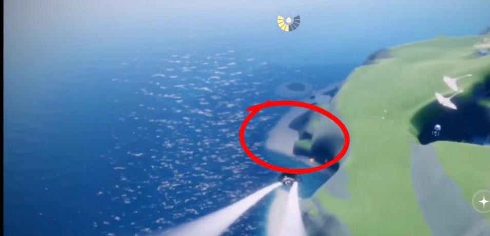 3、进入圣岛季节的地图中后,向前面的大岛屿下的瀑布那里飞下去,先祖就在那里,点亮先祖追随记忆即可。