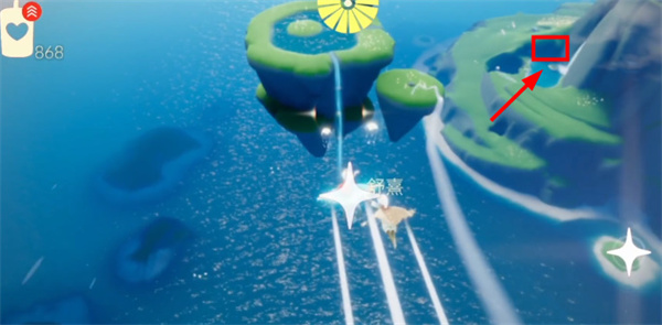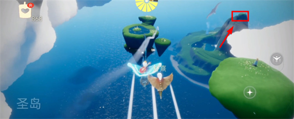 2、找到第一个小金人之后往左边飞,第二个在左边小圆山上面。