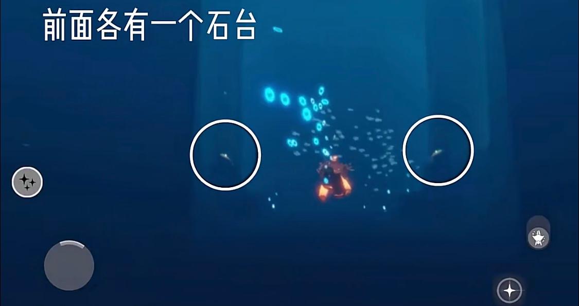 3、看到有蓝色氧气之后,朝着蓝色氧气所在的方向走,即可看到前方位置的左右两边会各自有一个机关。