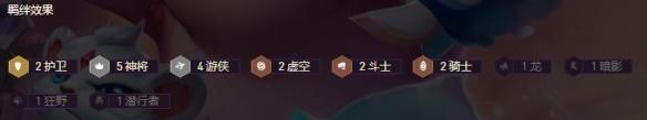 (6)我们从62滴血直接锁血到决赛圈,并且补齐阵容也成功升到九级凑齐5神将2护卫和4游侠,这局我们多了一个游侠转职,所以可以补上虚空恐惧来凑出2斗士和2虚空羁绊。