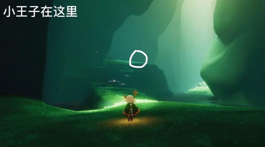5、从树洞的洞口内出来之后,就到达小王子任务二的位置了,在正前方山坡上可以看到小王子,靠近小王子即可触发开始第二个任务。