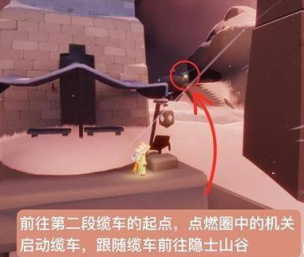 4、点燃圈中的机关启动缆车,跟随缆车前往隐士山谷。