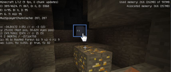 1.在游戏中首先要做的是记住自己出生点的坐标,想要看坐标点击键盘F3即可打开。