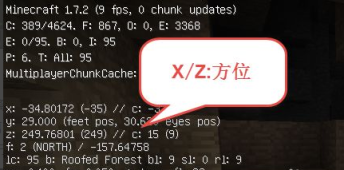 2.X: 玩家的位置相对0,0位点偏东的距离(负值为偏西),Z:玩家的位置相对0,0位点偏南的距离(负值为偏北),在实际使用中只需尝试走动使之趋向于目标点坐标即可,结合F数据一起看。