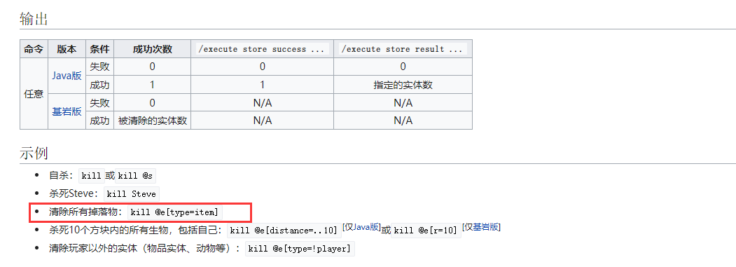 在游戏中,清除所有掉落物的指令是kill @e[type=item]。其实这指令的本质就是用了kill指令,用来指向杀死/清除实体(玩家、生物等)。玩家可以参照使用。