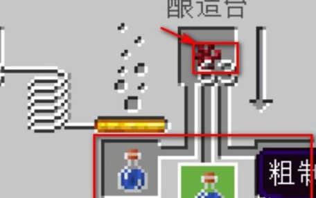 2.制作粗制的药水,材料:玻璃、水、地狱疣,首先将玻璃合成玻璃瓶,然后对着水点一下,获得水瓶,一次制作粗制的药水,需要3个水瓶。接下来在酿造台放入地狱疣和3个水瓶,一段时间之后即可获得粗制的药水。
